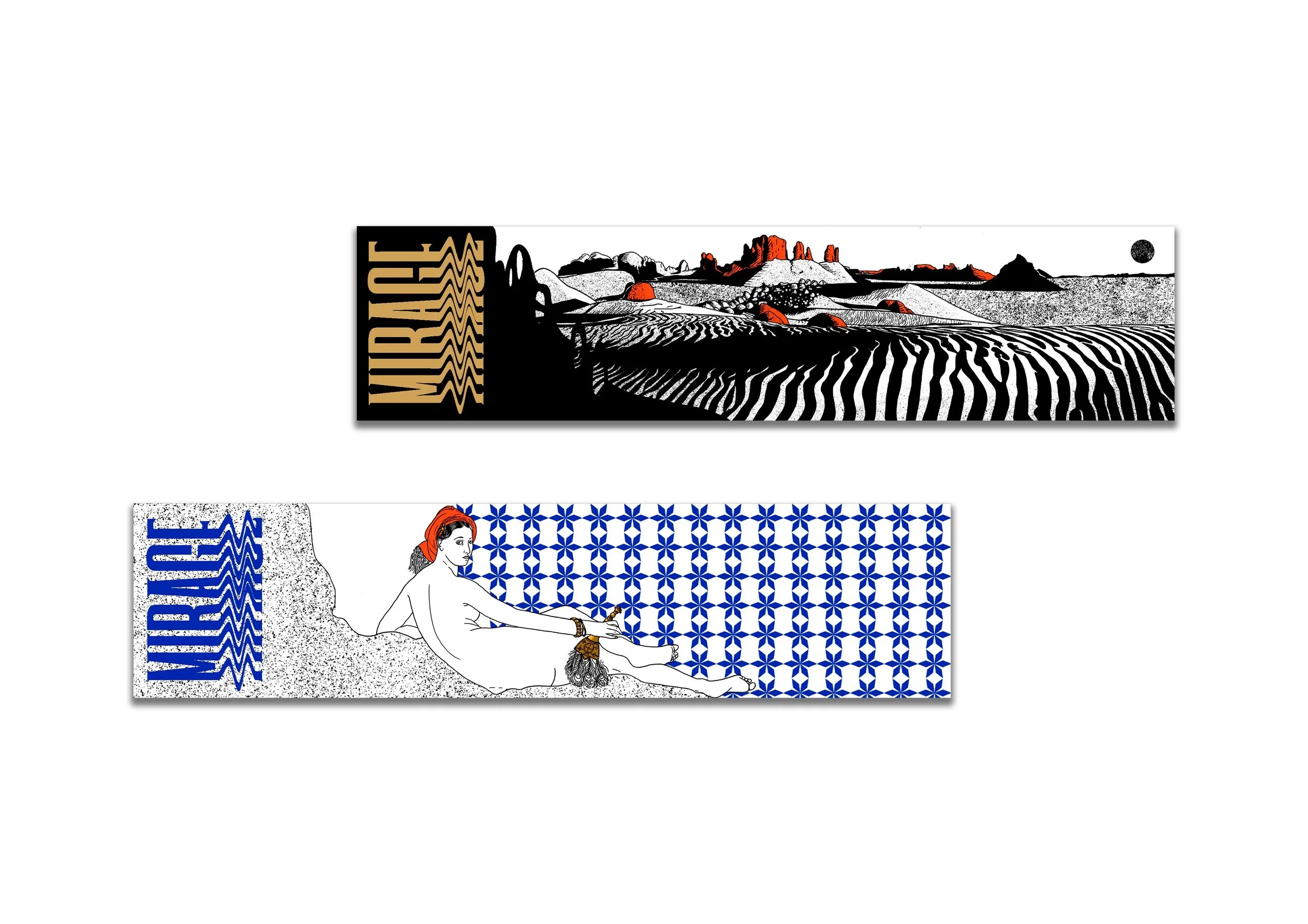 Mirage est un projet majoritairement illustratif sur le thème des contes arabes. Mises en page de différentes éditions, une sur les personnages récurrents, une sur les décors et un recueil de contes.